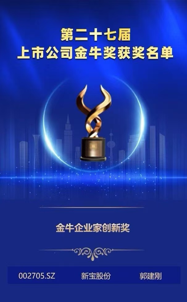 在此次评选中,,,公司董事长郭建刚先生荣获2024年度“金牛企业家立异奖”。。。。。。。